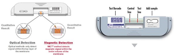 MARTM技術平臺可與常見的免疫層析(Lateral Flow)以及微流體芯片(Microfluidic Assay)等方法兼容,提供快速準確的定量分析結(jié)果。
