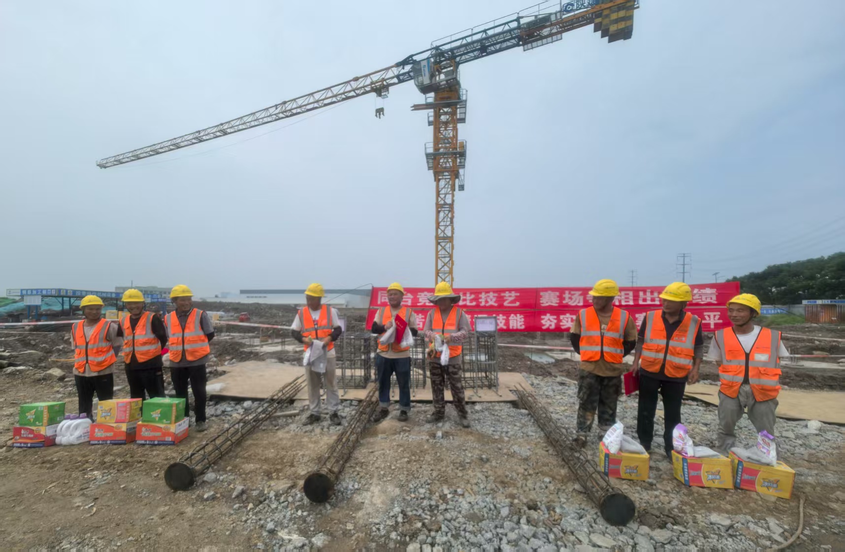 9月15日,現(xiàn)代物流攜手施工單位和監(jiān)理單位在施工現(xiàn)場舉行鋼筋綁扎技術比武大賽,來自勞務鋼筋組的九名技術能手同臺競技,一展風采。