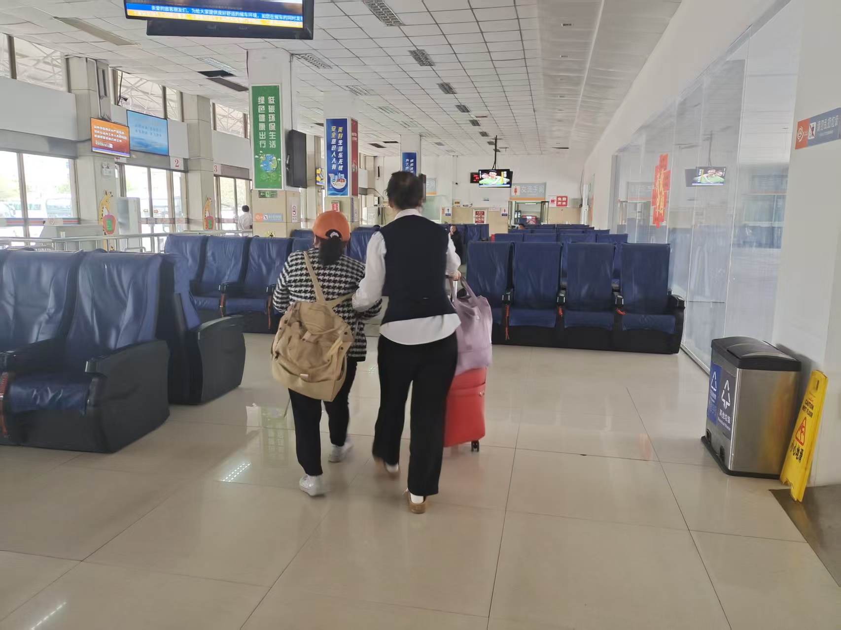 “您好,是要坐車嗎?”駱青立刻快步上前,聲音特意放輕,左手輕輕扶上旅客的胳膊肘,右手順勢接過她手里沉甸甸的布包。原來這位旅客要去沭陽,獨(dú)自出門來蘇欣快客站,剛進(jìn)門就慌了神。“您別著急,我陪您辦手續(xù)”駱青一邊安撫,一邊扶著她往購票窗口走,每過一個拐角、上一級小臺階,都輕聲提醒:“前面慢一點(diǎn),有個小坡”“窗口到了,我?guī)湍氵f身份證”。選好了去沭陽的班次,駱青幫著核對信息,把車票和身份證小心翼翼塞進(jìn)旅客手心:“您拿好,我扶著你去檢票、乘車?!苯又?,駱青拎著布包、行李箱帶旅客過安檢、檢票。上車時,駱青踩著臺階先幫旅客把行李放好,再扶著她上車坐穩(wěn),不忘叮囑駕駛員:“麻煩您路上多照看一下?!?/span>