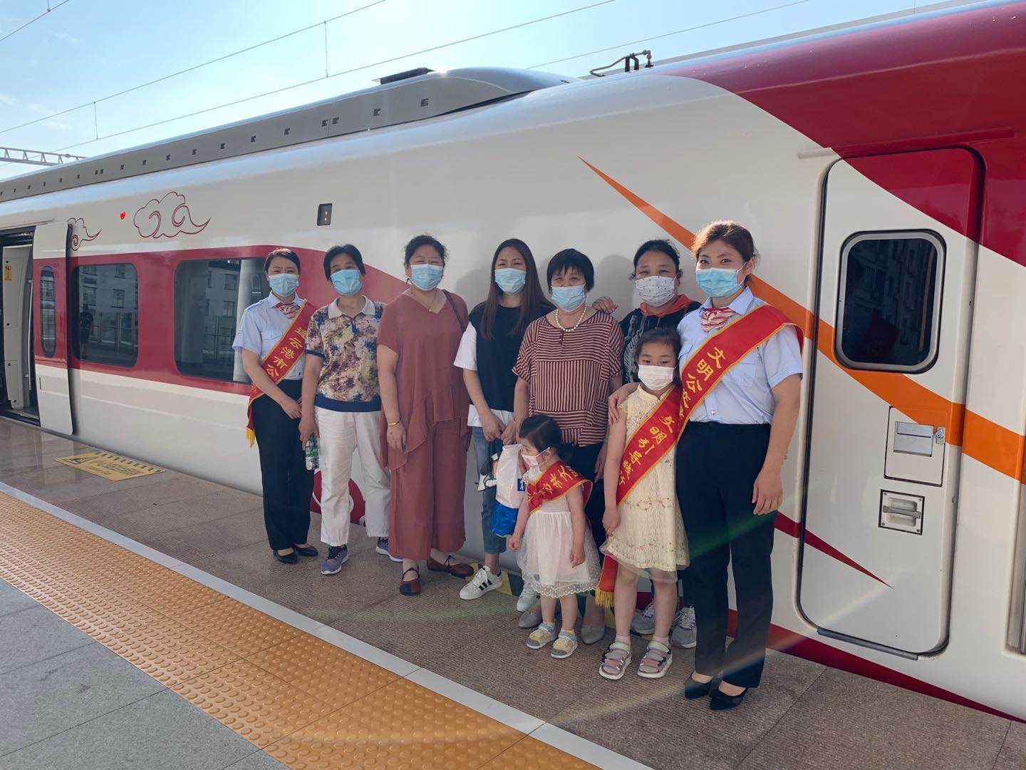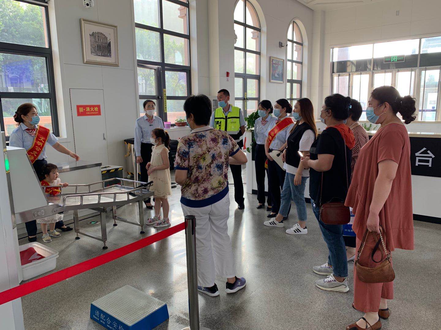 當(dāng)天下午4點整,活動準時開始。家屬們統(tǒng)一來到城市動車連云港站集合,值班站長韓雪首先將動車站務(wù)日常工作向家屬們做了詳細的講解,接著帶領(lǐng)大家先后參觀了城市動車候車室、員工值班室等區(qū)域。員工家屬對動車站內(nèi)的員工休息區(qū)及辦公區(qū)域的環(huán)境衛(wèi)生紛紛點贊,并拍照留念。孩子們第一次來到城市動車站坐動車,更是興致勃勃,戴上了紅綬帶,當(dāng)起了“小小引導(dǎo)員”。最后,為了讓家屬加深體驗感,帶領(lǐng)大家乘坐至連云古鎮(zhèn)的一趟動車,在乘車的過程當(dāng)中,韓雪對動車行駛??空军c等進行講解,員工家屬也對動車的乘車體驗大加贊揚。