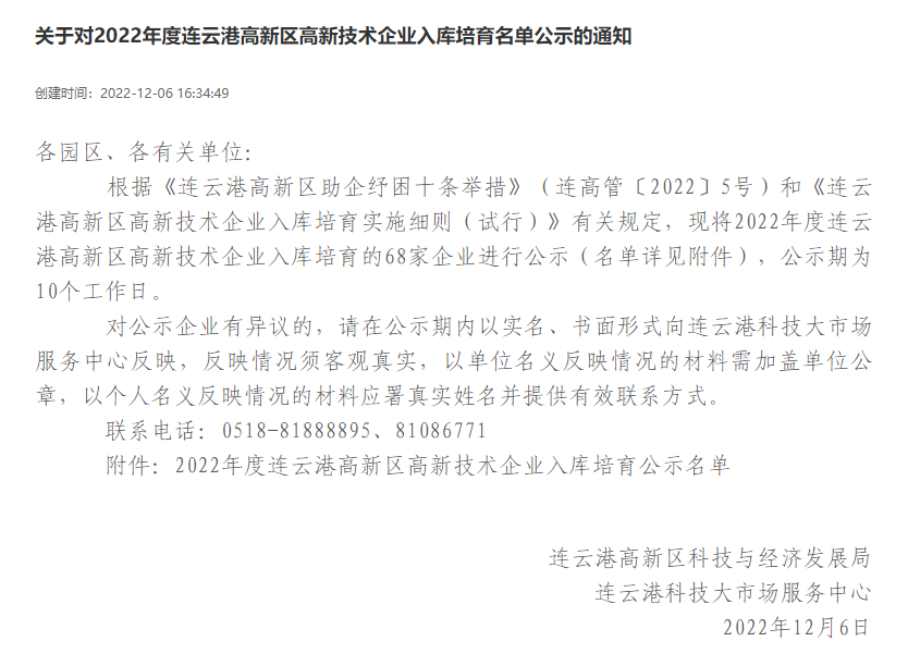 2022年12月19日,《連云港高新區(qū)高新技術(shù)企業(yè)入庫(kù)培育實(shí)施細(xì)則(試行)》公示期結(jié)束,江蘇明茂新能源科技有限公司(以下簡(jiǎn)稱“明茂公司”)成功加入連云港高新區(qū)高新技術(shù)企業(yè)培育庫(kù)。