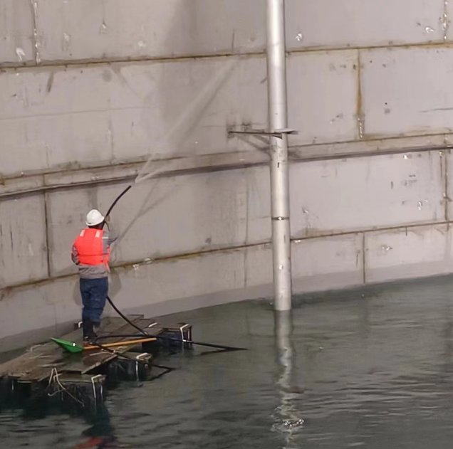 為確保水壓試驗(yàn)安全、高效、平穩(wěn)進(jìn)行,信泰公司提早謀劃方案、梳理注意事項(xiàng)。為防止水質(zhì)不達(dá)標(biāo)對儲罐造成損傷,信泰公司對水質(zhì)進(jìn)行了多次檢測,并對每日入罐脫鹽水水量進(jìn)行嚴(yán)格控制。在水壓試驗(yàn)過程中,信泰公司職工續(xù)加班8天,日夜奮戰(zhàn)在施工一線,以24小時輪流值班的形式進(jìn)行管理與監(jiān)督。