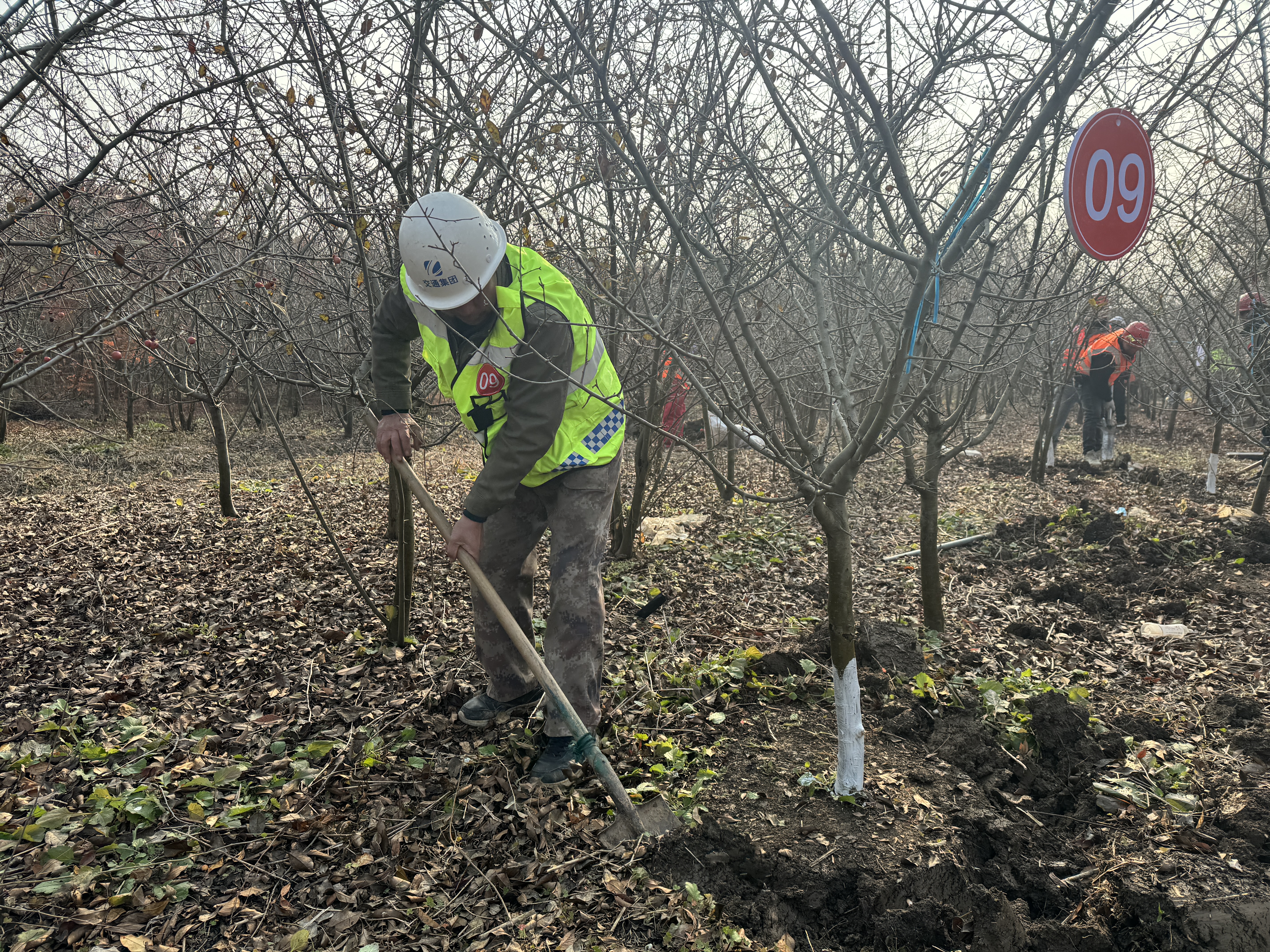 競賽中,綠石林建筑工程有限公司的隊員們面對地徑約5厘米、冠幅約1.5米的垂絲海棠移植種植挑戰(zhàn),嚴格按照《園林綠化工程施工及驗收規(guī)范》的相關(guān)要求,進行樹木帶土球起挖、定點挖穴、種植、修剪、做圍堰等一系列工作。盡管天氣寒冷、競爭激烈,但參賽隊員們憑借著扎實的專業(yè)技能和團隊協(xié)作精神,圓滿完成了各項任務(wù)。