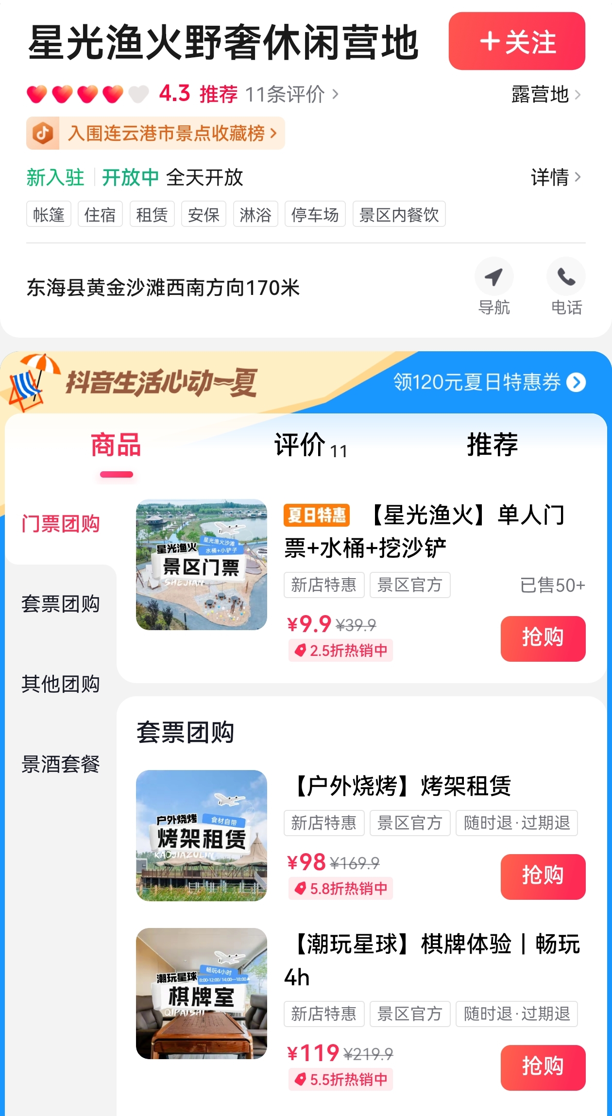 營地在三大主流OTA平臺上,通過高清實景圖、短視頻等多元形式,生動呈現(xiàn)5類住宿產品和10余種“水陸空”立體化休娛業(yè)態(tài),并推出多種組合產品。例如,抖音平臺上新“潮玩新球”、戶外燒烤、太空艙露營等團購套餐;攜程和美團側重營地特色民宿的營銷宣傳。自六月底上線至今,通過OTA平臺購票入營游客累計超百人次,預訂客房約10間。同時,營地充分利用用戶評價互動與限時優(yōu)惠策略,進一步拉動預訂量,線上咨詢量持續(xù)攀升,暑期預定量顯著提高,平臺的智能推薦算法精準觸達潛在用戶,客源范圍已從本地及周邊城市擴展至北京、湖南、山東等多地。