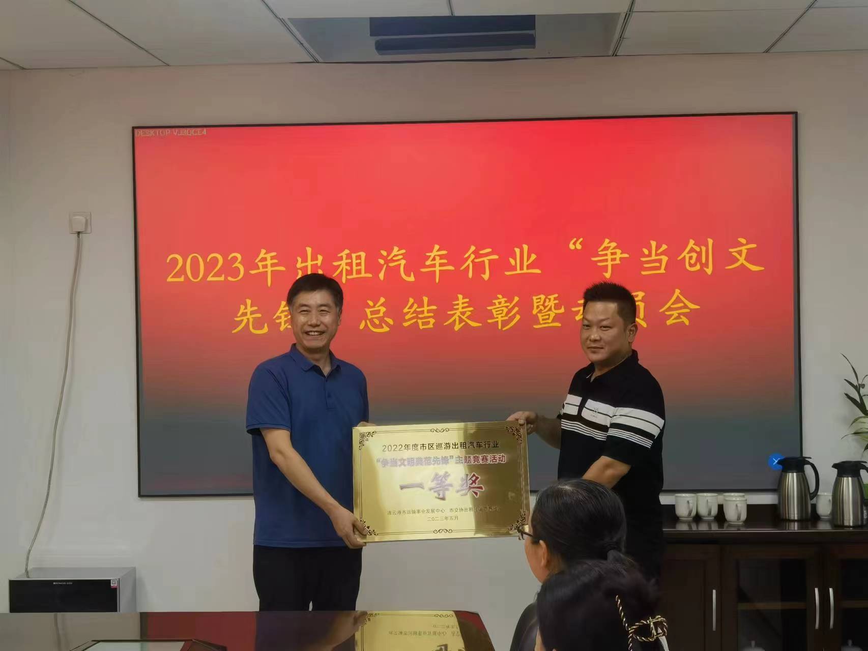 7月24日下午,連云港市運輸事業(yè)發(fā)展中心舉辦了2022年度市區(qū)出租汽車行業(yè)“爭當(dāng)創(chuàng)文先鋒”文明服務(wù)主題競賽活動總結(jié)表彰暨2023年度動員會。連云港市運輸事業(yè)發(fā)展中心黨總支委員、副主任胡泊、黨總支委員、副主任王吉東,汽服公司總經(jīng)理鞠仕亮等參加會議。