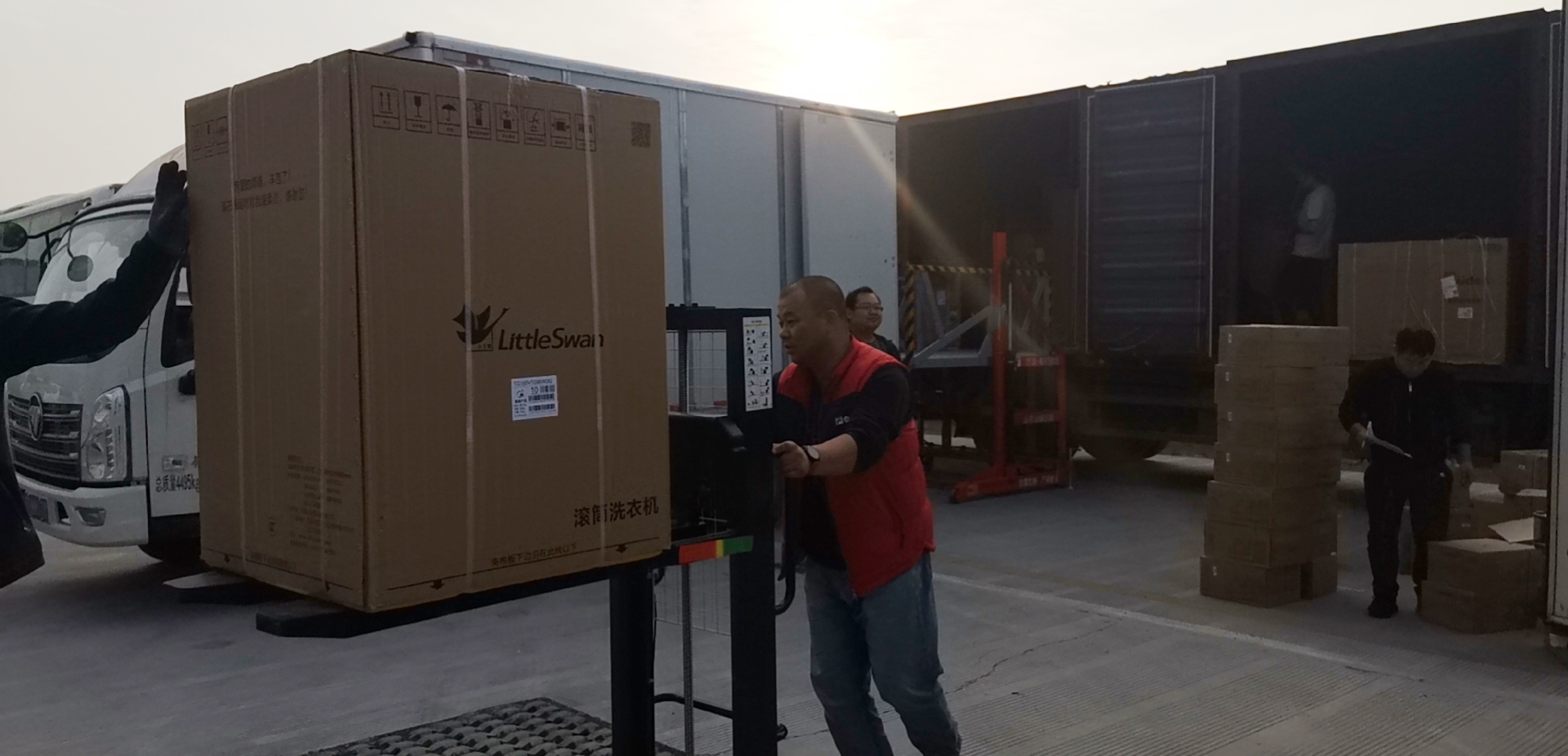10月1日,自連德物流公司承接美的旗下安得物流徐州-連云港電商、網(wǎng)批分撥點運輸業(yè)務以來,每日配送量在40-100方不等,單件貨物重量可達20-100公斤,僅裝卸成本需要1萬元/月。此次購置的移動裝卸平臺僅需按動一個按鈕就可將9.6米、4.8米貨車上的貨物運送至平地,配合單門架半電動堆高車便可以輕松地把貨物進行分裝。這些簡單的操作步驟在很大程度上降低了貨物在裝卸中的破損率,減輕配送人員勞動強度,無需增加裝卸人員便可完成貨物裝卸工作,大大節(jié)省了裝卸成本。