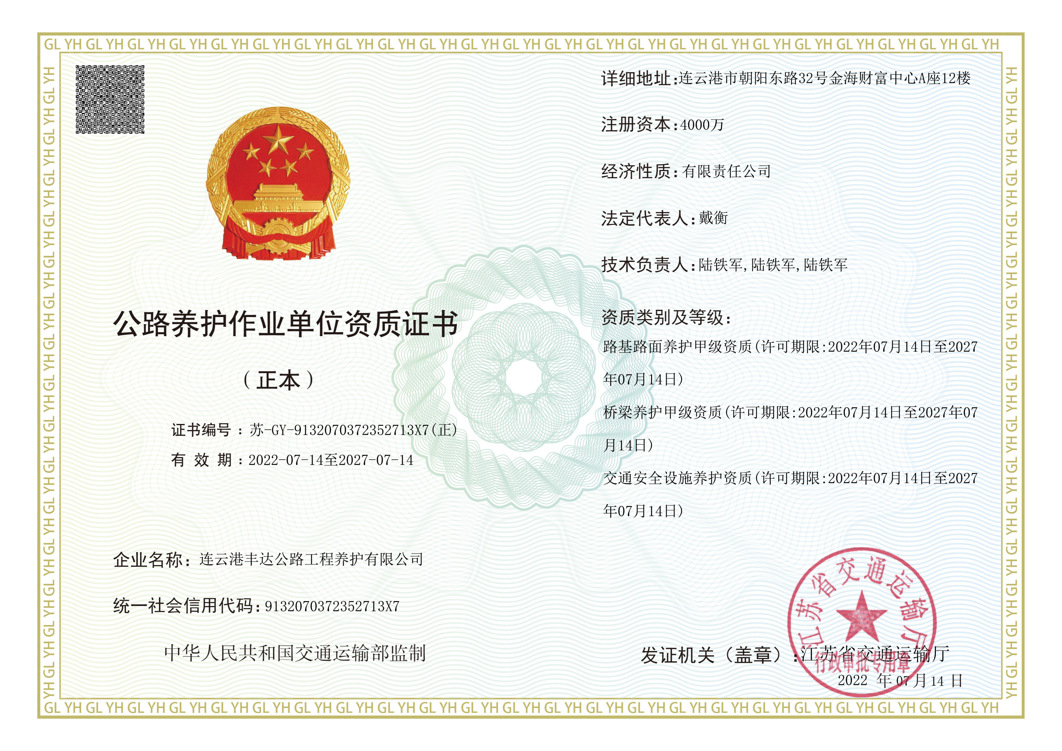 本次新取得的三項資質(zhì)證書,為豐達公司繼續(xù)立足公路養(yǎng)護市場奠定基礎,也意味著可以拓展更加廣闊的公路養(yǎng)護市場領(lǐng)域。