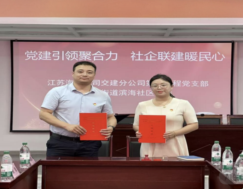 9月5日下午,江蘇海建交建分公司工程第五黨支部與連云區(qū)墟溝街道濱海社區(qū)黨委,在濱海社區(qū)黨群活動中心會議室舉行黨建共建協(xié)議簽署儀式。此次簽約標(biāo)志著雙方合作進(jìn)入制度化、規(guī)范化新階段,為構(gòu)建項(xiàng)目與社區(qū)命運(yùn)共同體注入強(qiáng)勁 “紅色動力”,也為基層黨建探索“組織共建、資源共享、難題共解”新模式提供了實(shí)踐樣本。