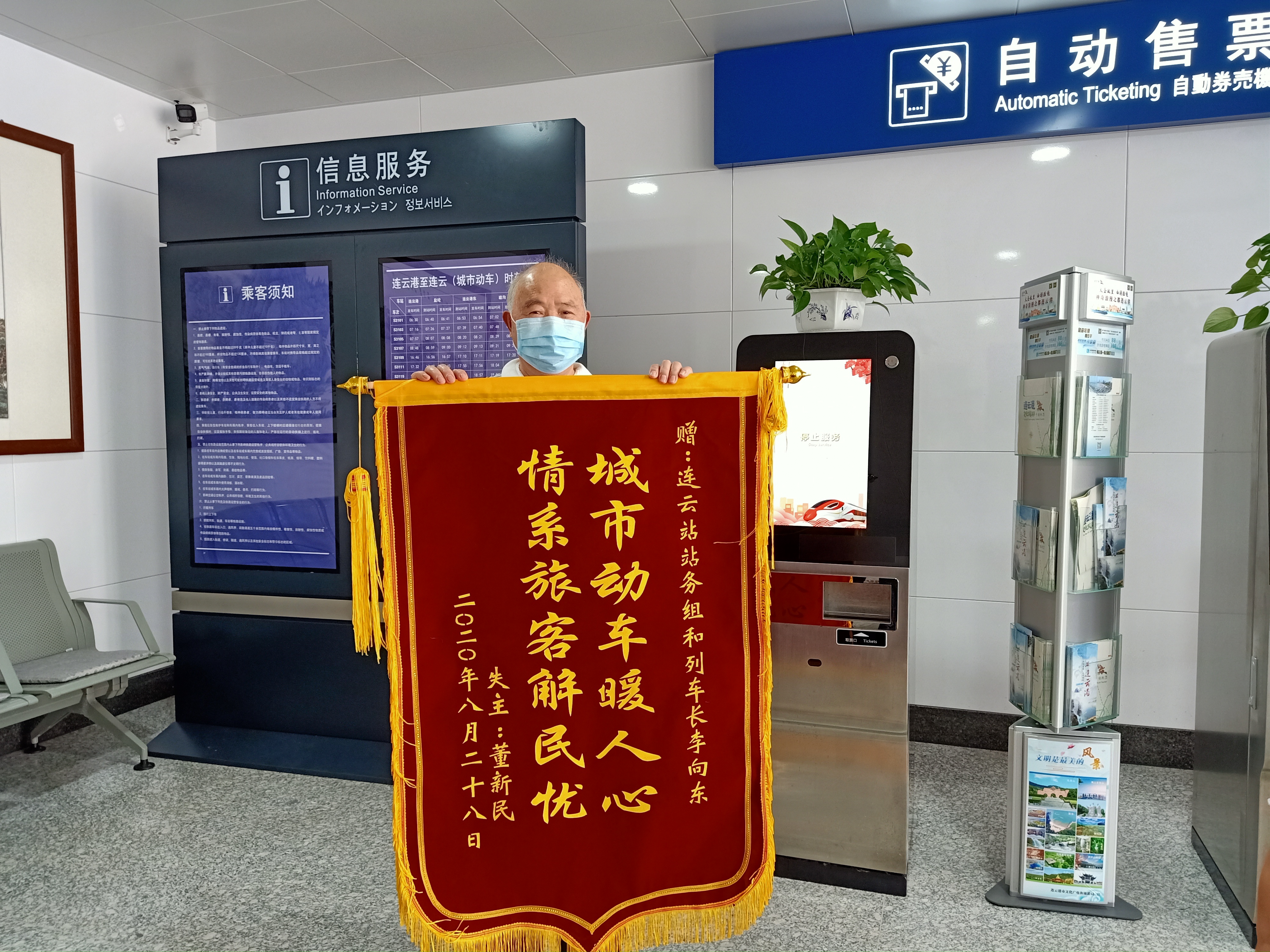 8月28日下午,一位大爺帶著孫子乘坐城市動(dòng)車去連云景區(qū)游玩。新穎獨(dú)特、舒適整潔的車廂一下吸引了小朋友的注意力,小朋友興奮萬(wàn)分,大爺也感嘆城市的發(fā)展速度并由衷的高興,以至于到達(dá)連云站下車時(shí),把小掛包丟在了車上。過了十幾分鐘后,才發(fā)現(xiàn)包沒在身上,大爺立馬趕回車站向工作人員尋求幫助??墒钱?dāng)時(shí)車已經(jīng)發(fā)車走了,大爺十分著急,因?yàn)榘镉猩矸葑C、駕駛證、銀行卡等重要證件,還有2000多元現(xiàn)金。得知情況后,連云站值班站長(zhǎng)孫曉婷及客運(yùn)接車人員杭從明緊忙聯(lián)系當(dāng)班列車長(zhǎng)李向東。得知此事后,列車長(zhǎng)立馬尋找掛包,座椅的邊邊角角都找了一遍,果然在后排座位上找到了掛包。他立刻聯(lián)系站務(wù)員告知包已經(jīng)找到,聽到這個(gè)好消息后,大爺懸著的心終于落地了,高興地說(shuō)“謝謝你們所有工作人員,如果不是你們的熱心幫助,我的包也不會(huì)在這么短的時(shí)間內(nèi)找到!”站務(wù)員及客運(yùn)接車員連忙回道:“這都是我們應(yīng)該做的,能幫助到您是我們最大的快樂。”