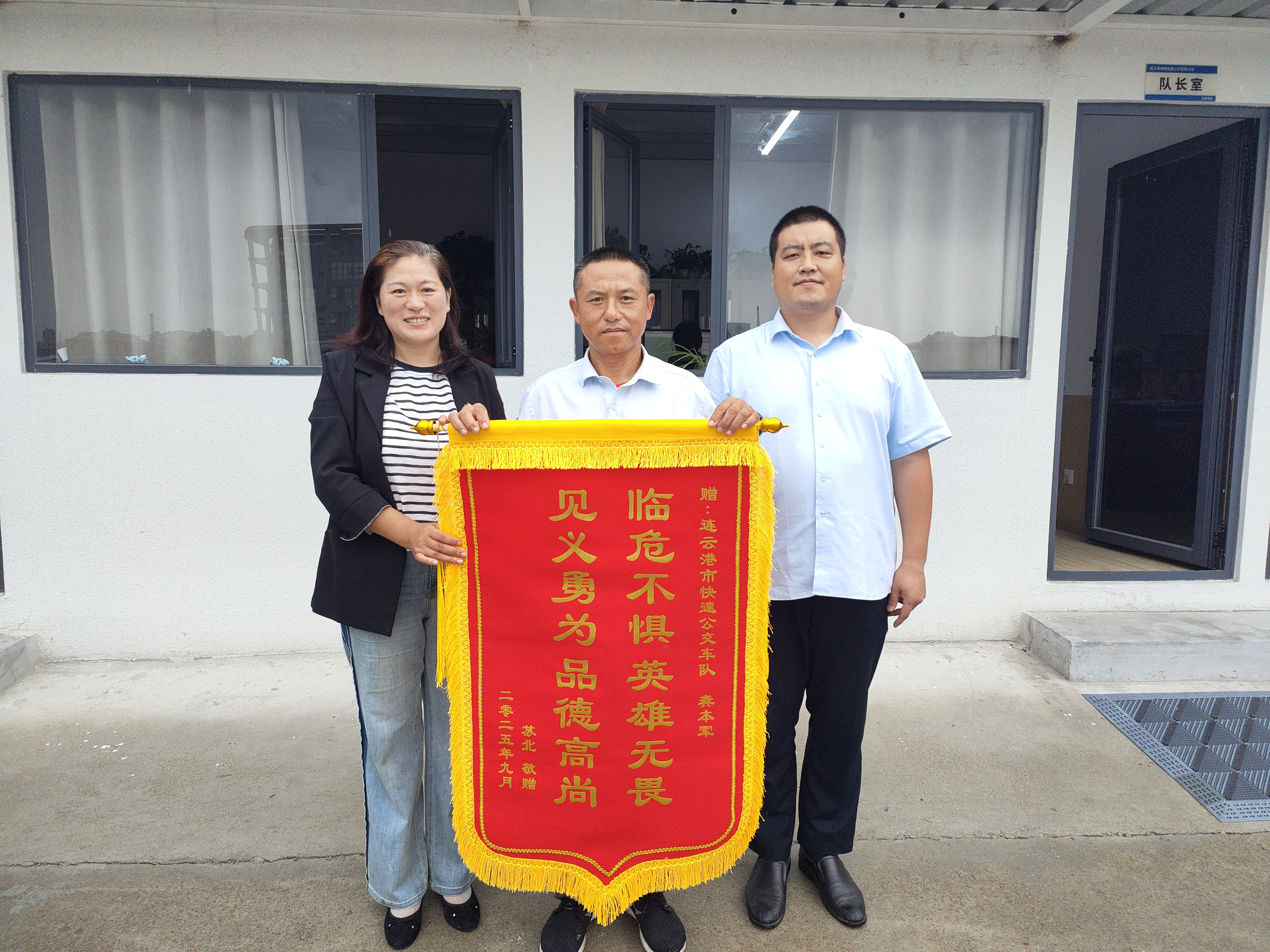 半個多月來,蘇女士身體逐漸恢復(fù),卻始終惦記著這位救命恩人。她多次在水庫邊等候,經(jīng)多方打聽,終于得知龔本軍是公交集團快速公交的一名駕駛員。于是,她寫下感謝信、制作好錦旗,專程來到龔本軍的工作單位表達謝意。“真是遇見了好人,救了我一命!感謝公交公司培養(yǎng)出這么高素質(zhì)的駕駛員!”訴說過程中,蘇女士眼中含淚,激動地展開錦旗。錦旗上寫著“臨危不懼,英雄無畏,見義勇為,品德高尚”十六個字,以此致敬心中的“英雄”。蘇女士想當面感謝龔本軍,得知龔本軍正在線路上運營,還需要1個半小時才能到達?!皼]關(guān)系,我等他,一定要當面謝謝龔師傅!”蘇女士堅定地說。上午11時30分左右,龔本軍抵達東站停車場。當蘇女士主動上前時,龔本軍驚訝地望著她,片刻后才反應(yīng)過來,眼前之人正是自己當初救下的落水者。面對蘇女士的感謝,他連連擺手,笑著說道:“沒事的,沒事的,只要人好好的就行,不用這么客氣?!?/span>