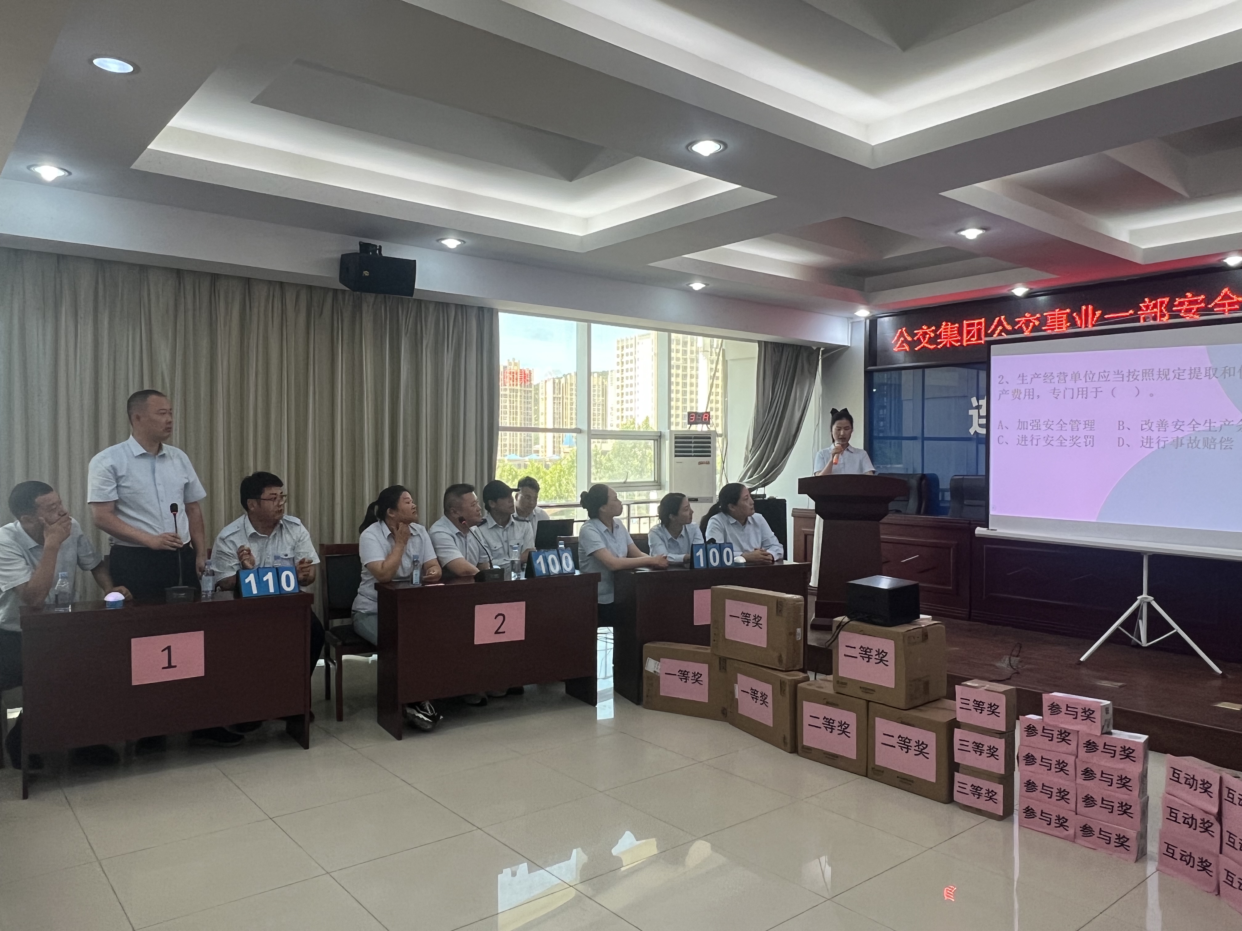 為了讓廣大干部職工更好地履行安全生產(chǎn)職責(zé)和義務(wù),使“以人為本”的安全理念深入人心, 6月20日下午,公交集團(tuán)公交事業(yè)一部在新華三樓會(huì)議室組織開展以“人人講安全、個(gè)個(gè)會(huì)應(yīng)急--暢通生命通道”為主題的安全生產(chǎn)知識(shí)競(jìng)賽活動(dòng)。參加活動(dòng)的人員有領(lǐng)導(dǎo)班子成員、管理人員、一線員工代表等,共計(jì)72人。