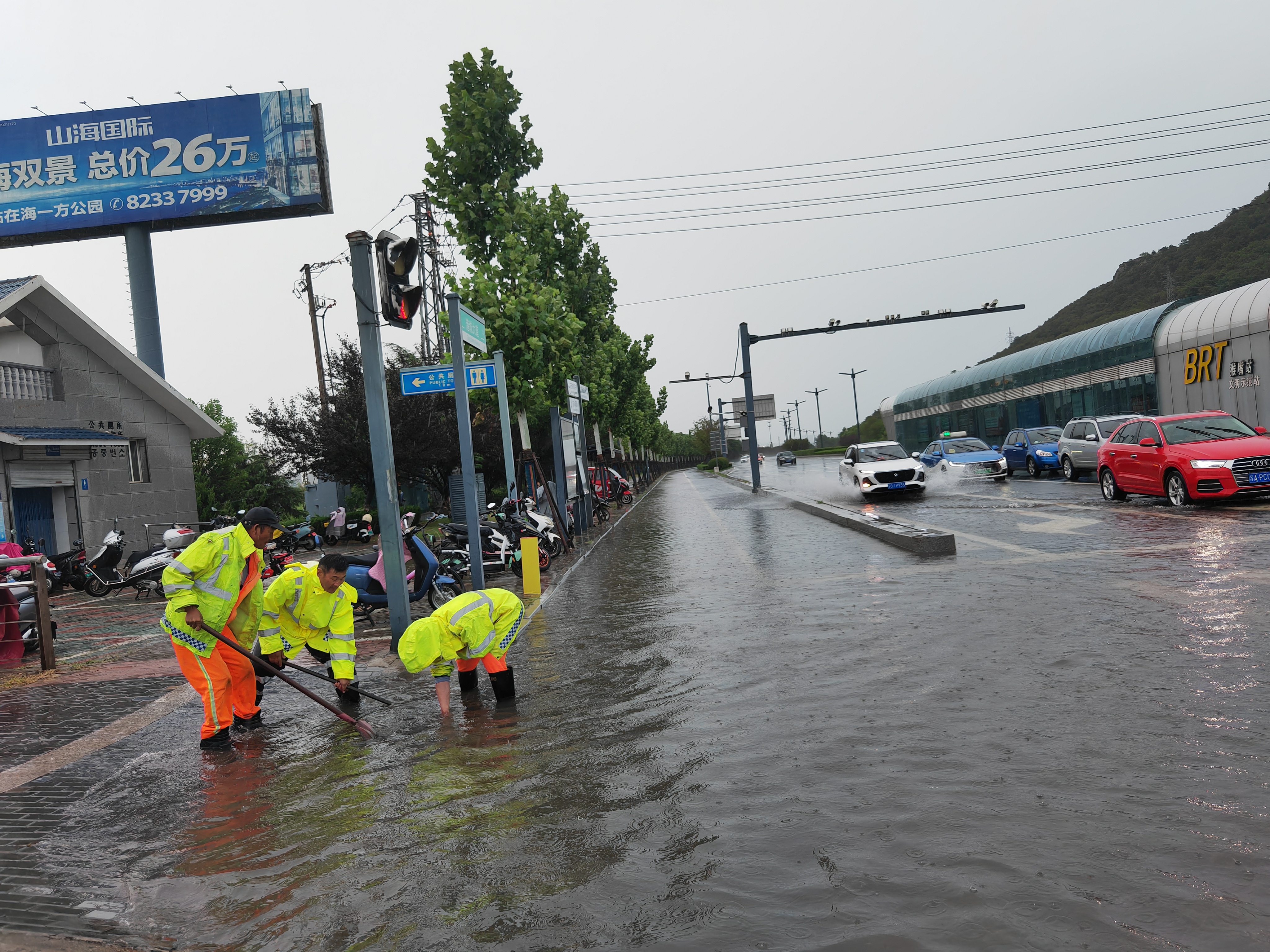 臺(tái)風(fēng)來臨前,豐達(dá)公司對(duì)管養(yǎng)路段進(jìn)行全面隱患排查,重點(diǎn)檢查排水系統(tǒng)、泵站運(yùn)行及施工現(xiàn)場(chǎng)安全,并提前調(diào)配應(yīng)急物資和設(shè)備。暴雨來襲后,公司立即按照預(yù)案要求,組織150余名應(yīng)急搶險(xiǎn)隊(duì)員、14臺(tái)應(yīng)急車輛、3套發(fā)電機(jī)組、8臺(tái)污水泵及800米水帶等搶險(xiǎn)力量,迅速開展道路巡查和險(xiǎn)情處置工作。