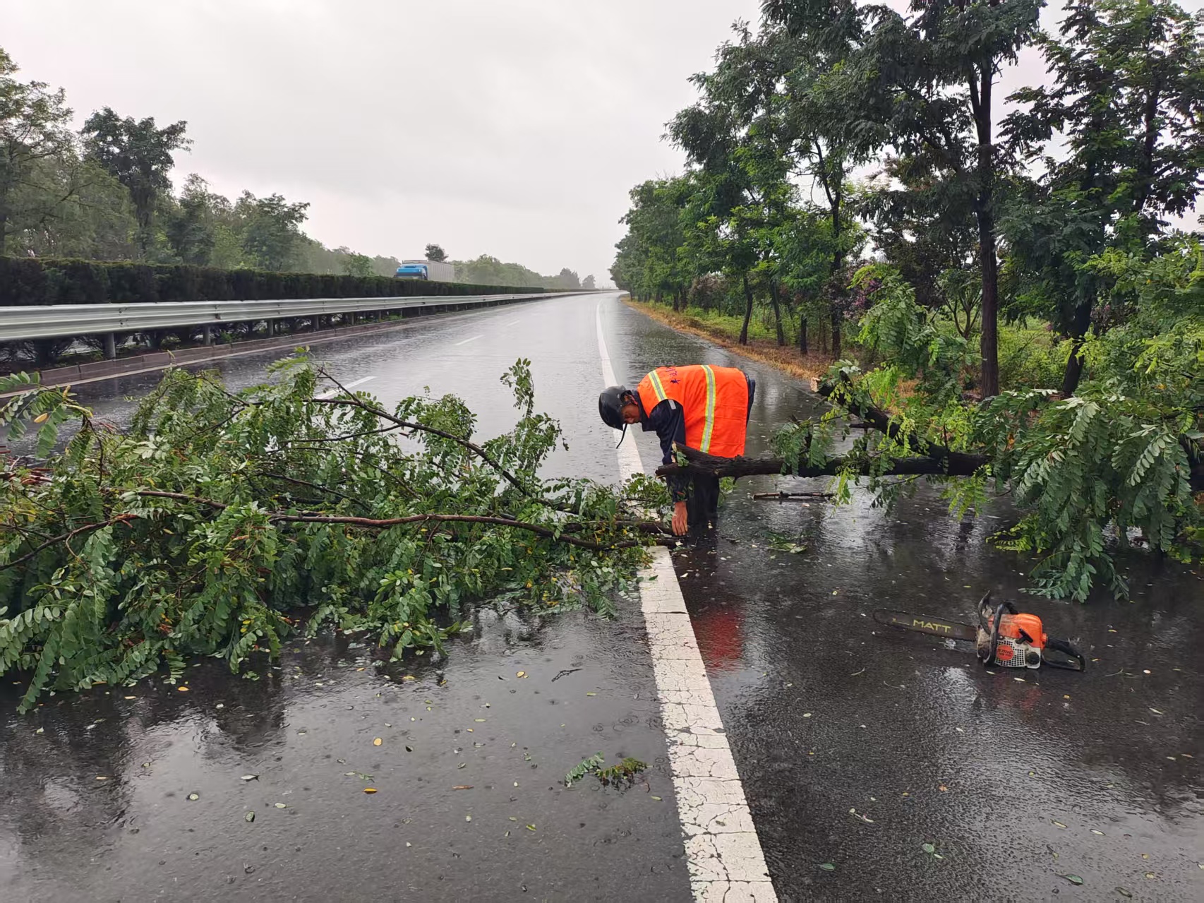 截至7月31日下午5時(shí),豐達(dá)公司累計(jì)巡查道路700公里,處置路面雜物120處,疏通排水52處,清理倒伏樹木56棵,有效確保了國、省干線及高速公路的安全暢通。
