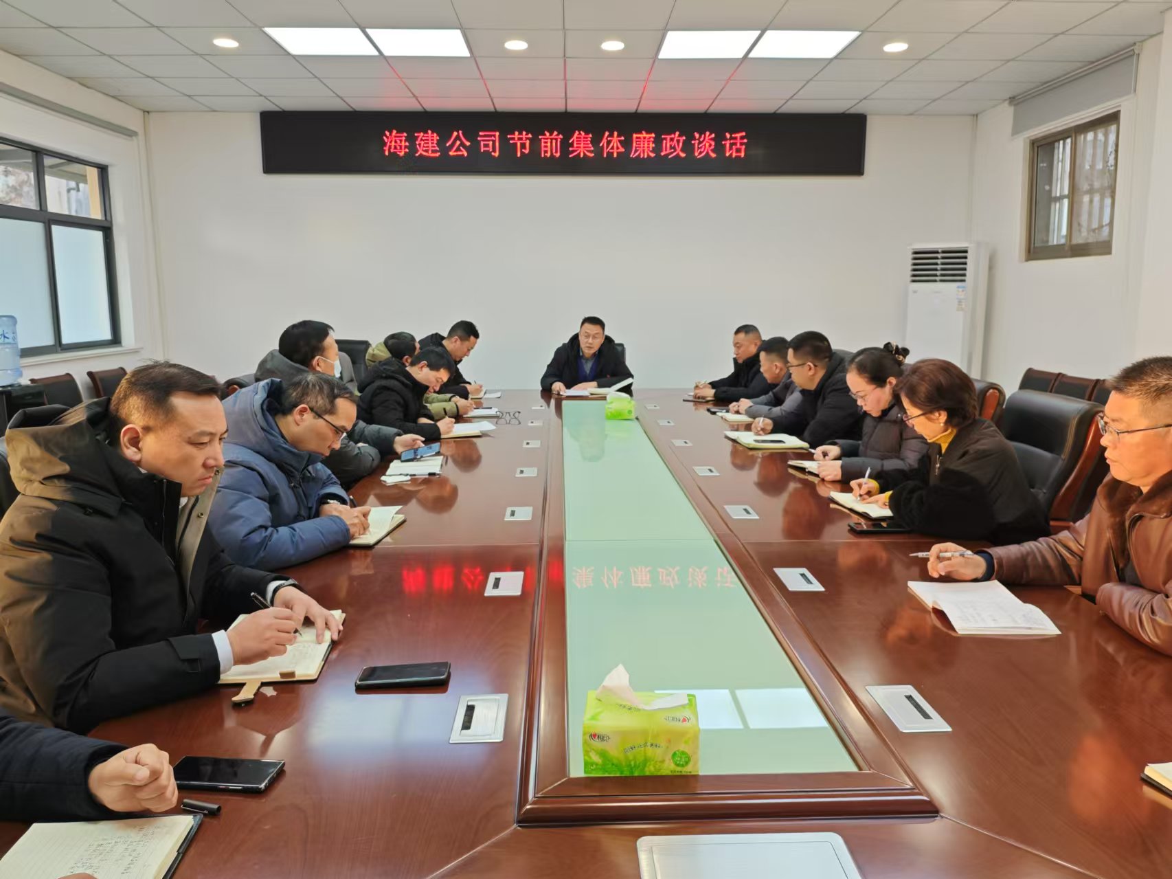2025年春節(jié)將至,為深入貫徹落實全面從嚴治黨要求和中央八項規(guī)定精神,持續(xù)深入開展黨風廉政建設,確保全體黨員干部干凈過節(jié)、廉潔過節(jié),近日,海建公司黨委組織開展集體廉政談話。