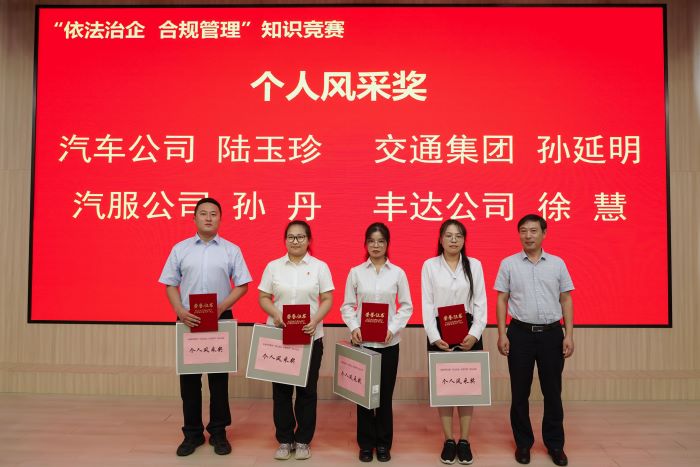 8月20日,汽服公司在交通控股集團(tuán)舉辦的“依法治企 合規(guī)管理”知識(shí)競(jìng)賽中脫穎而出,以優(yōu)異的成績(jī)榮獲二等獎(jiǎng)和個(gè)人風(fēng)采獎(jiǎng)。此次競(jìng)賽不僅展現(xiàn)了汽服公司強(qiáng)大的團(tuán)隊(duì)凝聚力和員工們的專業(yè)素養(yǎng),更彰顯了公司在依法治企、合規(guī)管理方面的堅(jiān)定決心和顯著成效。