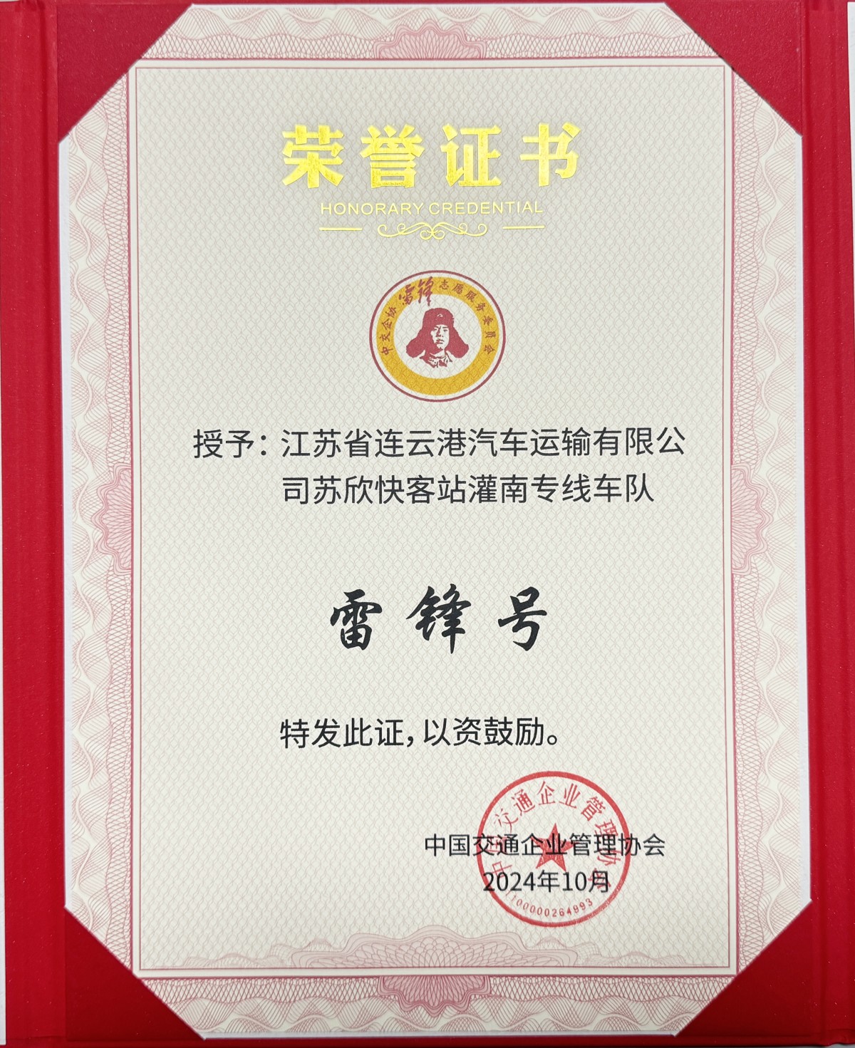 近日,由中國(guó)交通企業(yè)管理協(xié)會(huì)主辦的“中交企協(xié)雷鋒工委年會(huì)暨學(xué)雷鋒志愿服務(wù)典型集體和個(gè)人成果發(fā)布會(huì)”在北京隆重舉行。會(huì)上,汽車公司灌南專線車隊(duì)獲得“雷鋒號(hào)”稱號(hào)。這一榮譽(yù)不僅是對(duì)車隊(duì)在客運(yùn)服務(wù)領(lǐng)域工作的認(rèn)可,更是對(duì)其深入貫徹雷鋒精神、全心全意服務(wù)于人民的宗旨的高度評(píng)價(jià)。