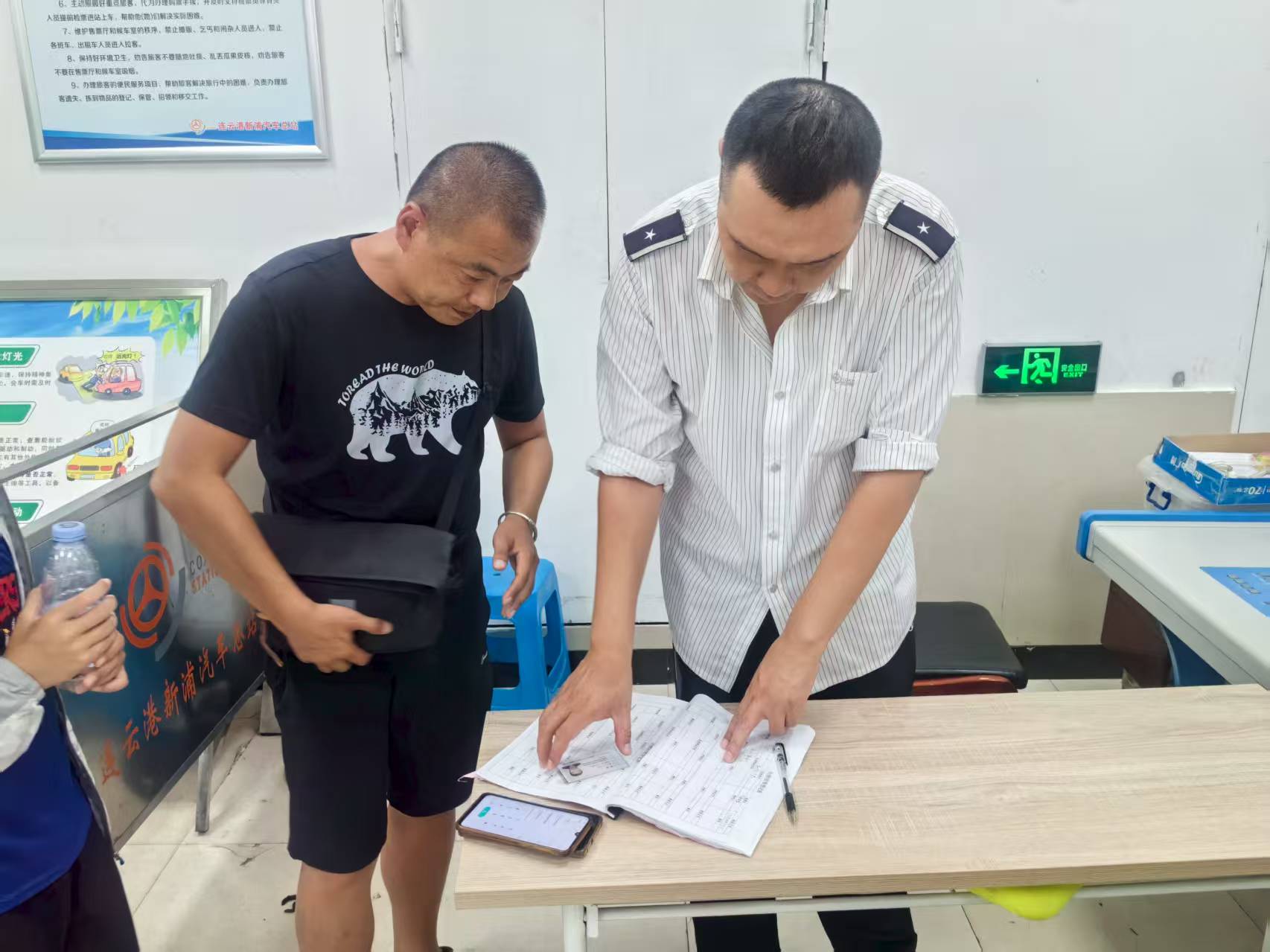 當(dāng)日上午,陳如東駕駛機(jī)場巴士從花果山機(jī)場至新浦汽車總站,待所有旅客下車后,按照操作流程對車輛進(jìn)行內(nèi)部清潔,發(fā)現(xiàn)一部黑色手機(jī)遺落在座位上,當(dāng)即拿起手機(jī)查看,且無法找尋失主??紤]失主會焦急尋找,陳如東立即將手機(jī)送至總站“雷鋒車”組服務(wù)臺,交由服務(wù)臺工作人員登記保管。約半小時后,一名旅客匆匆趕到總站“雷鋒車”組服務(wù)臺,稱其乘坐機(jī)場巴士時不慎遺失手機(jī),工作人員隨即核對旅客身份信息、手機(jī)信息,確認(rèn)無誤后,將手機(jī)歸還旅客。旅客拿到失而復(fù)得的手機(jī)后,激動地向工作人員表示:“太感謝你們了,真沒想到還能找回,你們真是新時代的‘活雷鋒’啊!”