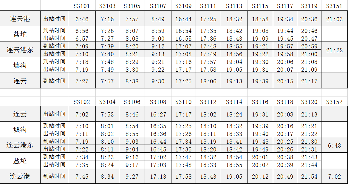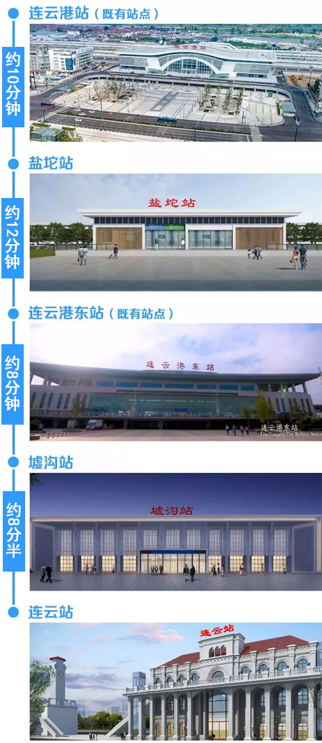 市域列車(chē)一期工程連云港站至連云站,線路全長(zhǎng)35.1公里,沿線設(shè)置連云港、鹽坨、連云港東、墟溝、連云共5個(gè)客站。開(kāi)通運(yùn)營(yíng)后,市域列車(chē)每日有11對(duì)列車(chē)對(duì)開(kāi),10對(duì)在連云港站至連云站區(qū)間運(yùn)行,1對(duì)在連云港站至連云港東站區(qū)間運(yùn)行。