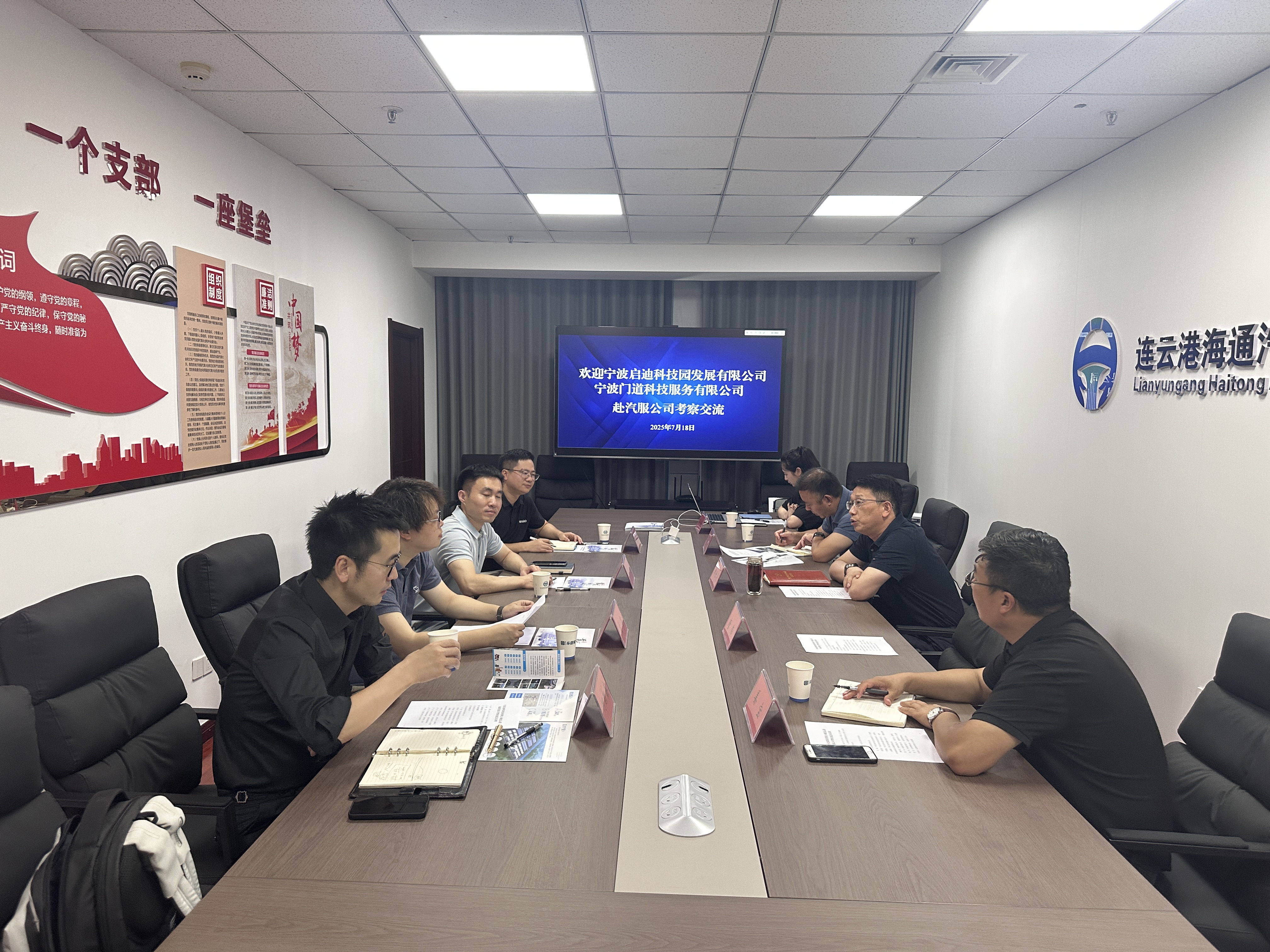 2025年7月18日上午,連云港首發(fā)經(jīng)濟(jì)產(chǎn)業(yè)園區(qū)發(fā)展合作交流會在連云港海通汽服有限公司會議室召開。寧波啟迪科技園發(fā)展有限公司總經(jīng)理應(yīng)鑫、董事長徐貢勛,連云港海通汽服公司黨委書記、董事長鞠仕亮、總經(jīng)理唐偉,相關(guān)職能部室負(fù)責(zé)人等參加會議。雙方就產(chǎn)業(yè)園區(qū)發(fā)展等多領(lǐng)域的深度合作展開了富有成效的探討。