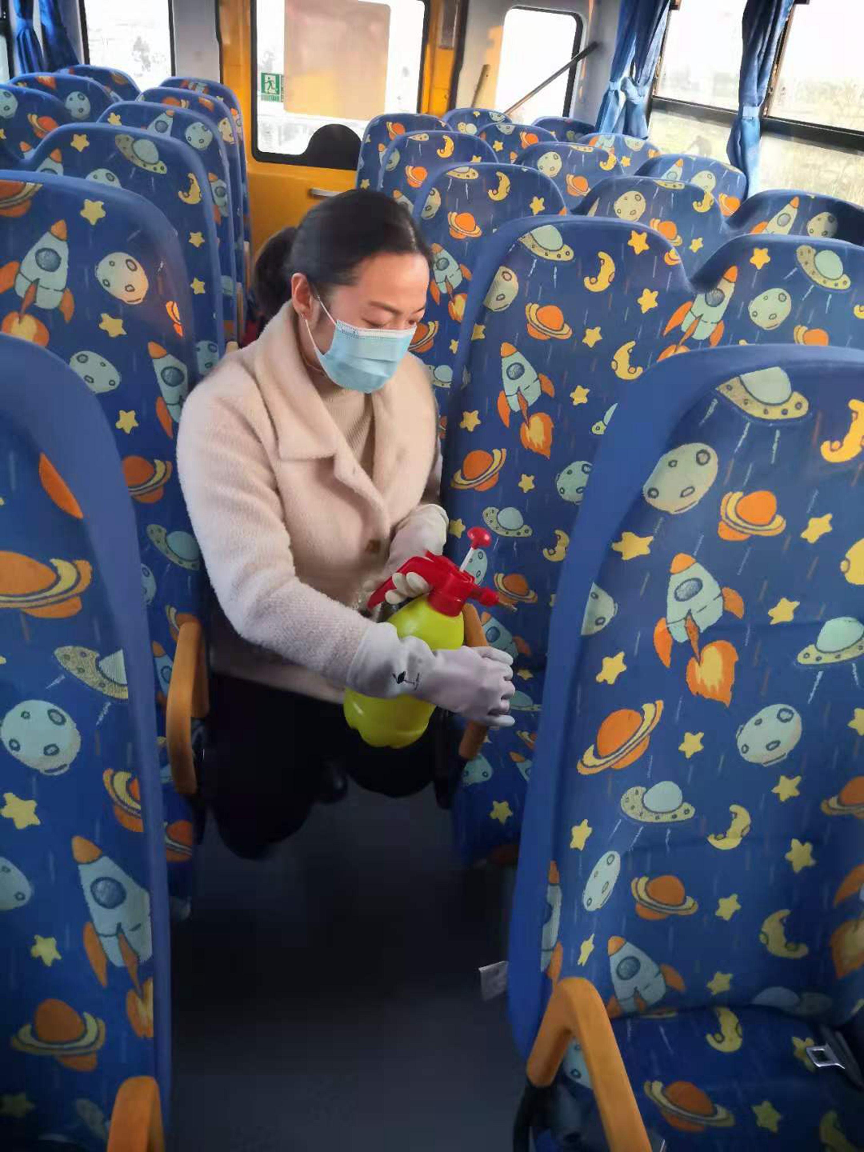 欣達校車值班人員每天都會對校車駕駛員和照管員進行安全叮囑,在做好回站車輛和“兩不見面”車輛的早晚巡查安全告誡記錄的同時,要求照管員每天必須對乘車學(xué)生進行體溫測量,對車廂進行全面消毒并上傳到工作群,切實發(fā)揮好監(jiān)督作用,確保校車的安全運行。